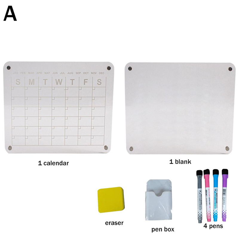 Acrylic Dry and Wet Wiping Board Writing Board Refrigerator Magnetic Weekly and Monthly Calendar Note Board Message Board