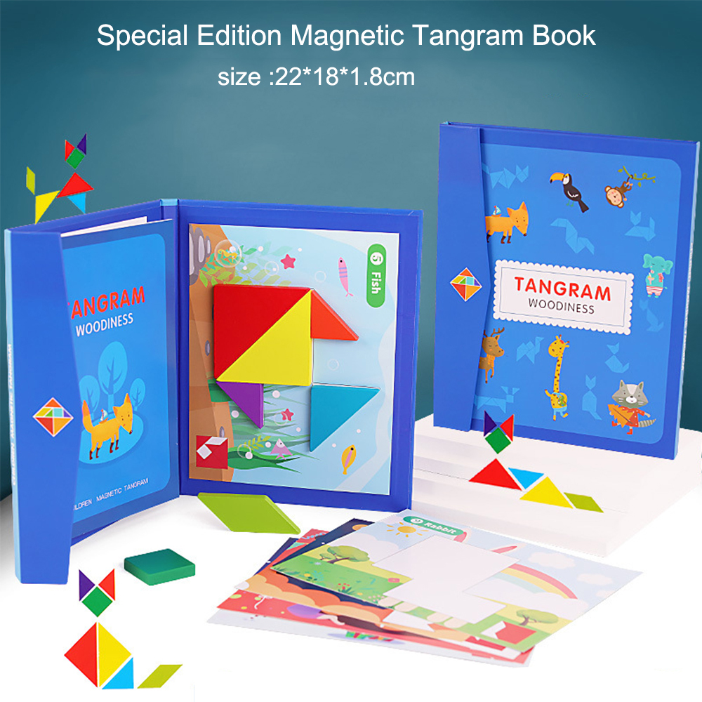 H: Special Edition Magnetic Tangram Book (include 7 puzzles + 96 question book+ 5 paper cards)